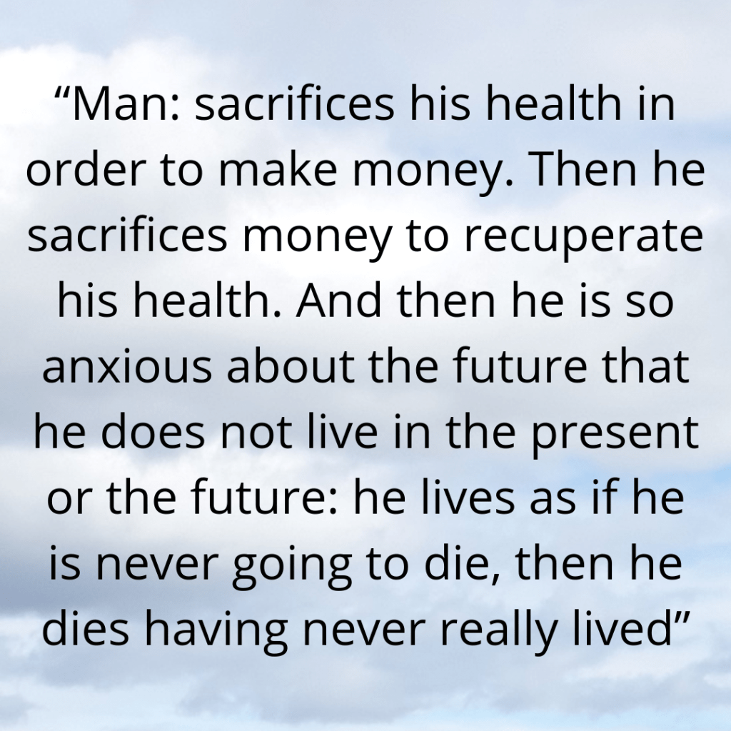 We have been given this body for the duration of our time on this life journey. We spend a lot of time and effort building up our wealth – but in later years it is likely we will value our health so much more.